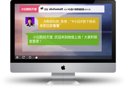 現(xiàn)場用戶關注活動主辦方微信公眾賬號,發(fā)送文字、表情、圖片消息就可上墻展示,迅速提升現(xiàn)場熱度,讓大家互動起來。