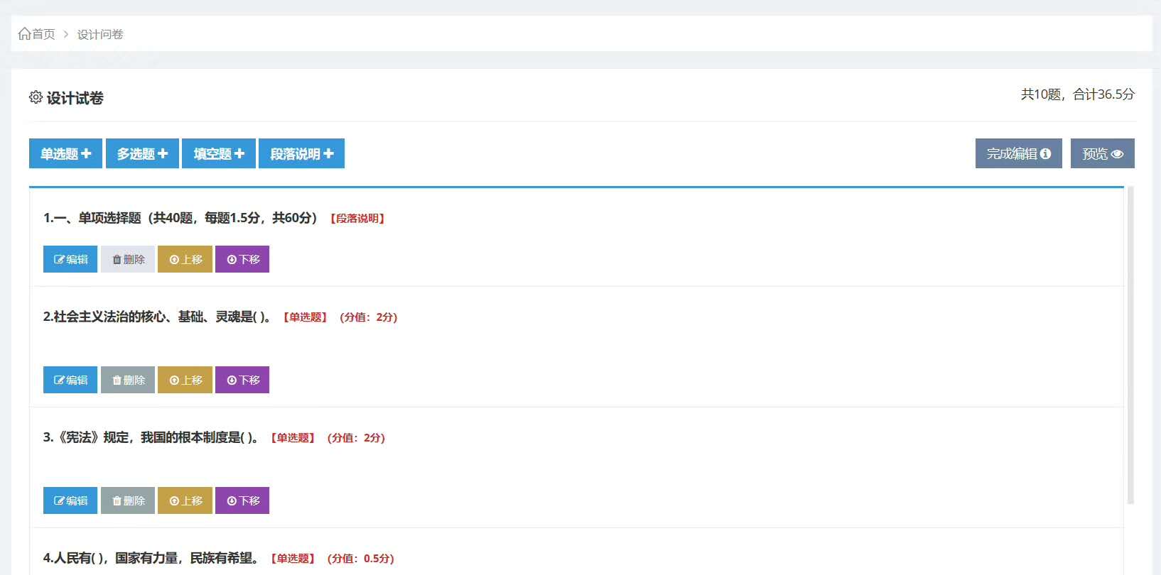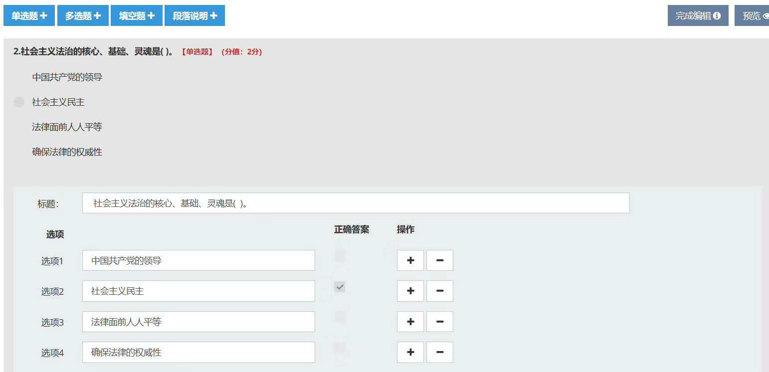 簡(jiǎn)易性:支持批量導(dǎo)入各種類型文件題庫(kù),支持固定試卷、抽題試卷和隨機(jī)試卷,自動(dòng)生成統(tǒng)計(jì)報(bào)表。
